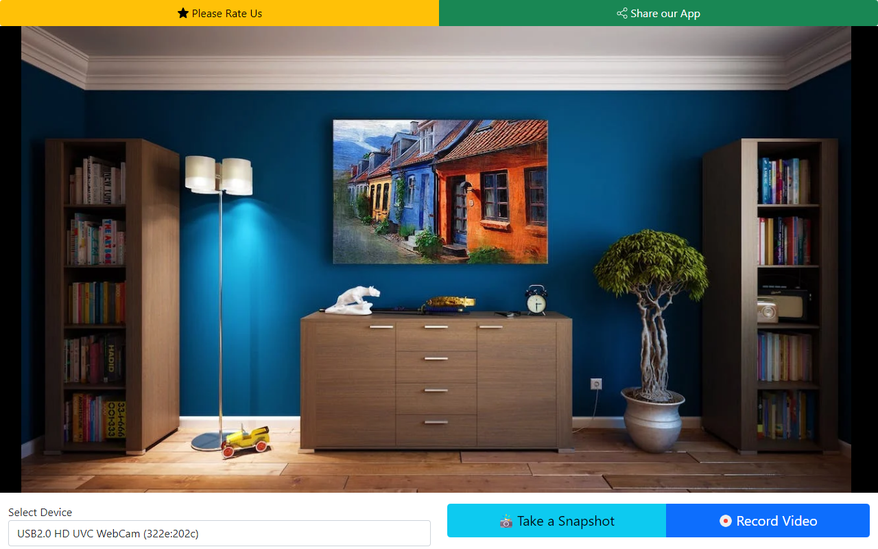 Quickly take a snapshot (picture) or record a video from your webcam. You can save the file to your computer or upload to Google Drive.